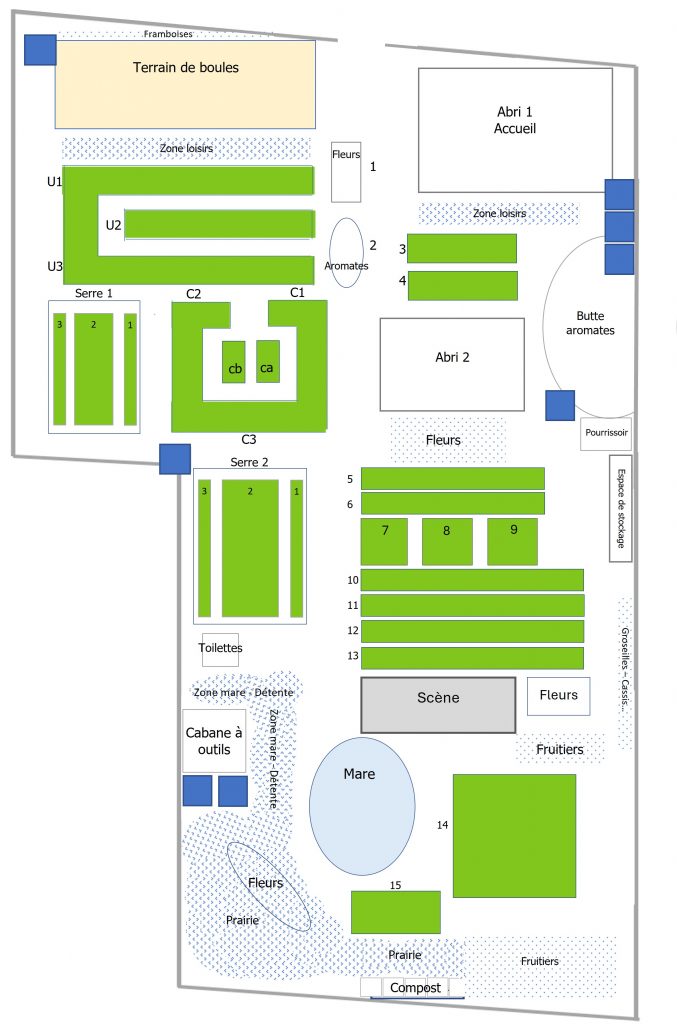 L’association gère actuellement un jardin potager collectif de 1600 m² à Laxou. En plus d’être un lieu d’expérimentation de techniques de permaculture, sans intrants chimiques, ce jardin est également le lieu de rencontres quotidiennes.